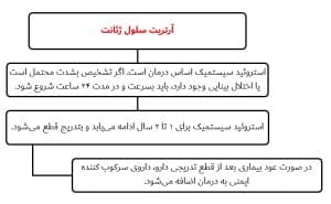 درمان آرتریت تمپورال با کورتیکواستروئیدهای سیستمیک شروع میشود.