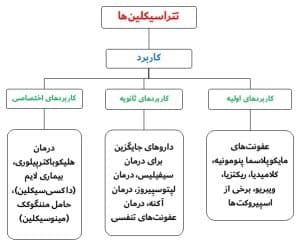 از تتراسیکلینها برای درمان عفونتهای مختلفی استفاده میشود: