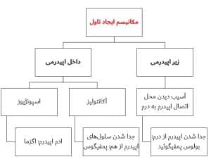 تاولهای پوستی توسط مکانیسمهای مختلفی بوجود میآیند: