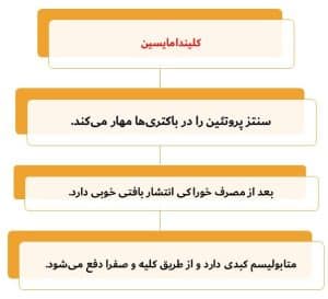 کلیندامایسین آنتی‌بیوتیکی است که سنتز پروتئین باکتری‌ها را از طریق مکانیسمی مشابه با ماکرولیدها مهار می‌کند.